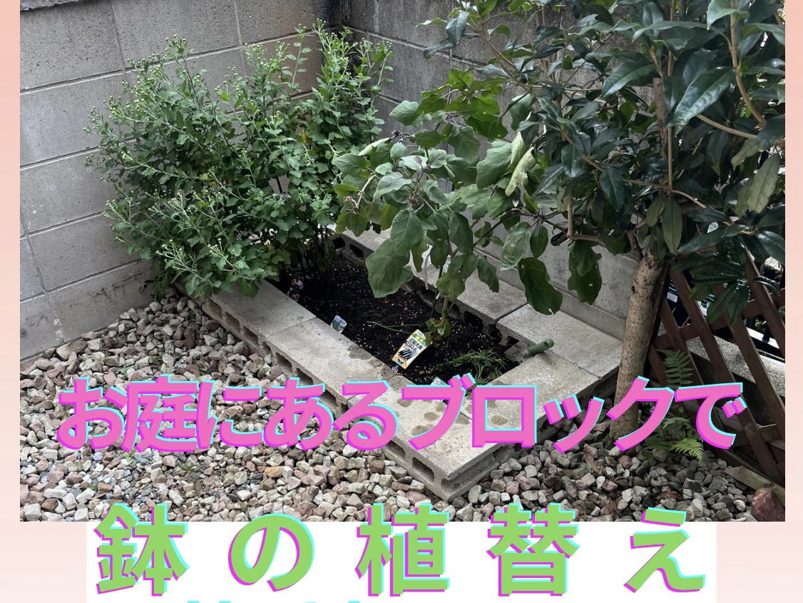 お客様から「庭にあるブロックを使って花壇を作ってほしい」とのご依頼😊